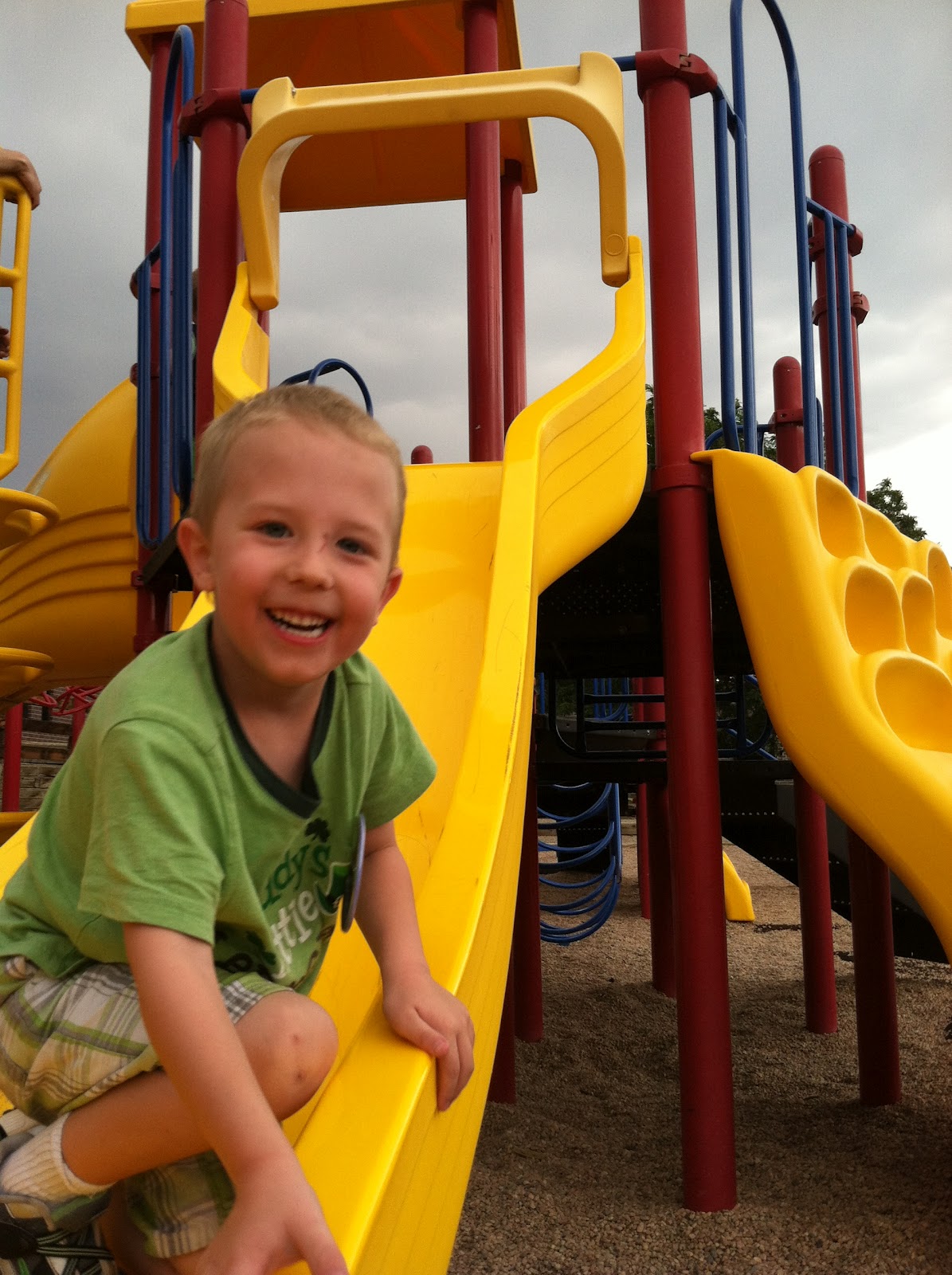 So now the boys room has been transformed. All the baby stuff is in the basement and we have a full blown boy room. They are enjoying the bunk bed. Cayden sleeps on the top and Jake sleeps on the bottom. They have lined the side of the bed with their animals to keep them company. We have yet to get them matching bedding but hopefully that will come soon. ;)
